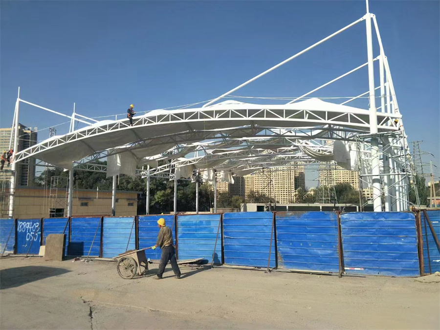 膜結(jié)構(gòu)工程的保護和維護。膜材表面不應(yīng)與刀子、銳器接觸,以免劃破及磨傷膜材表面。一旦發(fā)現(xiàn)膜材被劃破、嚴(yán)重磨傷等現(xiàn)象時,應(yīng)及時采取有效措施以免磨傷更加嚴(yán)重,同時通知廠商派人修復(fù),鋼構(gòu)件表面不得遭受硬物打擊與劃傷,不得接觸各種酸性、堿性和有機溶劑。