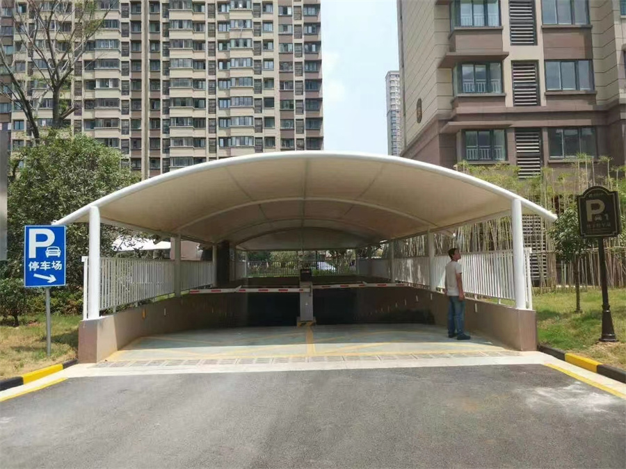 我們一般所說的膜結(jié)構(gòu)出入口主要是指,在出入口的地方加上膜結(jié)構(gòu)的頂棚,根據(jù)其應(yīng)用場景的不同,我們可以分為以下幾種形式:1、地下車庫膜結(jié)構(gòu)出入口,2、大門膜結(jié)構(gòu)出入口,3、停車場出入口膜結(jié)構(gòu)收費(fèi)亭,下面我就就詳細(xì)的說下這三種類型的膜結(jié)構(gòu)出入口以及其應(yīng)用案例。 1、地下車庫膜結(jié)構(gòu)出入口 地下車庫膜結(jié)構(gòu)其主要就是取代一些傳統(tǒng)的地下車庫出入口雨棚,其具有很多優(yōu)點(diǎn):1、膜結(jié)構(gòu)雨棚產(chǎn)品可部分拆裝、多次重復(fù)使用,隔間系統(tǒng)材料有些不會給環(huán)境帶來廢物,是一種綠色環(huán)保建材,使用壽命長從長遠(yuǎn)來看,隔得佳廠家安裝高隔間系統(tǒng)材料比安裝其它形式隔斷材料更廉價(jià)、更為合算,2、安裝更為便捷,3、材質(zhì)選擇范圍廣,可以選PVC/PVDF/PTFE/ETFE等材質(zhì),4、自潔性強(qiáng),因?yàn)槟げ谋砻嫱坑头牢弁繉?,不宜沾染灰塵,依靠雨水的沖洗就能持久如新,5、物理性能好,抗老化,使用壽命長。 2、大門膜結(jié)構(gòu)出入口 大門膜結(jié)構(gòu)出入口其主要是提供大門遮陽、遮雨功能,并增加大門造型的觀賞性、藝術(shù)性,其優(yōu)點(diǎn)主要有:1、造型新穎,創(chuàng)意十足,具有很好的景觀效應(yīng),提升建筑的整體品質(zhì),2、膜材就有很好的抗腐蝕性,耐火性,自重低抗震性能優(yōu)異,3、膜材具有良好的透光性,可以為大門提供更好的照度,4、張拉膜結(jié)構(gòu)的獨(dú)特曲面外形使其具有強(qiáng)烈的雕塑感。膜面通過張力達(dá)到自平衡。負(fù)高斯膜面高低起伏具有的平衡感使體型較大的結(jié)構(gòu)看上去像擺脫了重力的束縛般輕盈地飄浮于天地之間。無論室內(nèi)還是室外這種雕塑般的質(zhì)感都令人激動。 3、停車場出入口膜結(jié)構(gòu)收費(fèi)亭 張拉膜結(jié)構(gòu)搭建的停車場出入口膜結(jié)構(gòu)收費(fèi)亭以膜材、鋼索及支柱構(gòu)成,利用鋼索與支柱在膜材中導(dǎo)入張力以達(dá)安定的形式,這種形式非常適合大跨度的建筑結(jié)構(gòu),除了可實(shí)踐具有創(chuàng)意、創(chuàng)新且美觀的造型外,也是最能展現(xiàn)膜結(jié)構(gòu)精神的構(gòu)造形式,其施工精度要求高,結(jié)構(gòu)性能強(qiáng),且具豐富的表現(xiàn)力。與傳統(tǒng)的簡易收費(fèi)亭相比,膜結(jié)構(gòu)收費(fèi)亭具有非常多的優(yōu)勢,如施工便捷,搭建速度快,結(jié)構(gòu)自重輕,安全性高,使用壽命長等。