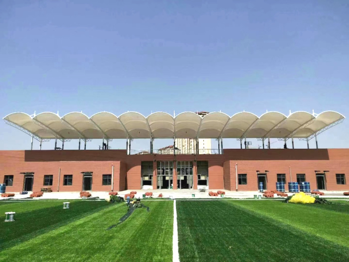因此很多學(xué)校 或者體育場(chǎng) 都會(huì)選擇張拉膜結(jié)構(gòu)的形式來(lái)搭建體育看臺(tái),這樣不僅可以保證體育看臺(tái)的美觀,還可以達(dá)到遮陽(yáng) 遮雨的效果,后期使用過(guò)程中還方便維護(hù),節(jié)省人工成本。