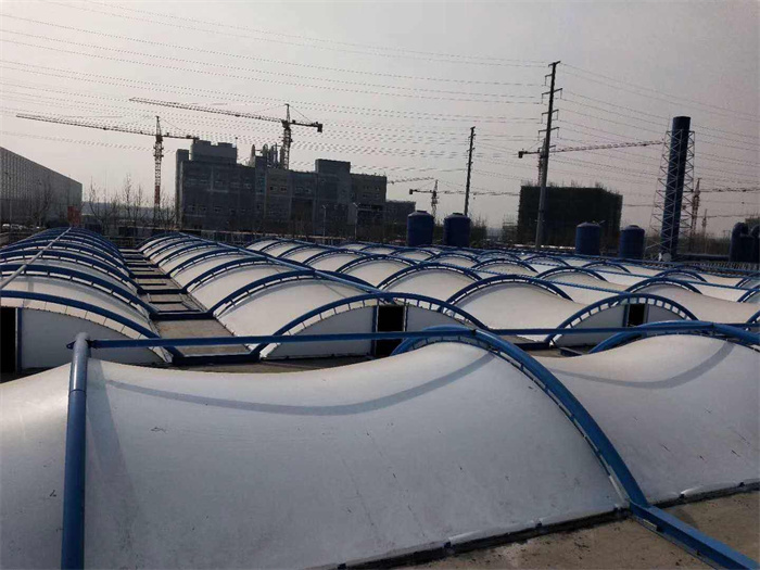 3.施工方面,膜結構的施工均采用專業(yè)的施工團隊,對當?shù)氐沫h(huán)境,池體的結構特征,膜結構污水池加蓋的展現(xiàn)形式等進行嚴密的考慮后,再進行膜結構污水池加蓋施工,保證每次施工的安全性和質(zhì)量。